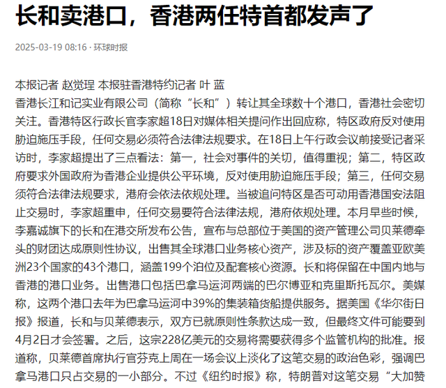 中央港澳办四度发声,呼吁李嘉诚悬崖勒马,美国贝莱德集团首次打破沉默,回应此次交易,各方势力角逐之际,这场横跨两大洲的资产交易最终将导致港口拥有权花落谁家?