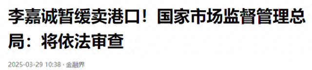金融界:李嘉诚暂缓卖港口!国家市场监督管理总局:将依法审查